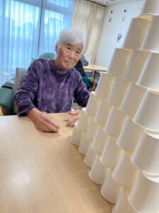 スタッフもお手伝いをさせて頂きましたが入居者の方々が満足する塔が完成しました🗼