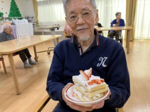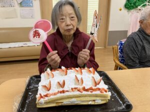 ケーキを前に、にこやかなご様子。