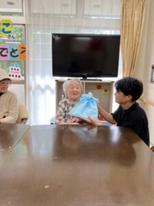 ケーキを食べた後、スタッフから誕生日プレゼントを渡しました。