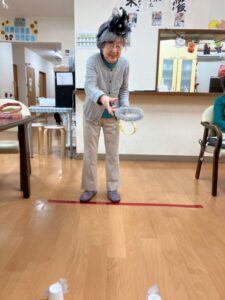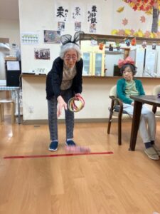 まずスタッフ手作りの輪投げを行いました!