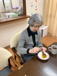 おやつにスタッフ手作りのハロウィンケーキを食べました。