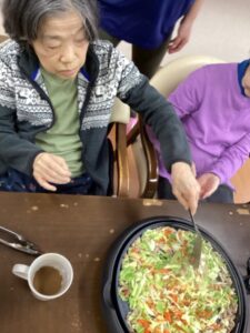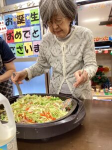 先日、誕生日を迎えられた利用者様に手作り焼きそばを作り