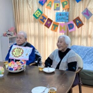 ホームに戻ってからは同じく2月生まれの利用者様の合同誕生日会を行ないました!