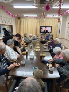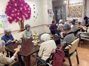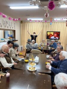 午後になり2階の利用者様全員が1階に来られ、アフタヌーンティーがスタート!