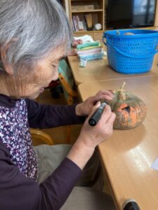 利用者様がかぼちゃに可愛いお顔を描いてくださいました😆🖌️