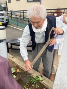 土をみんなでホリホリ👩🌾👨🌾 「どこにあるかな〜?」「おっ、出てきた!」と笑顔いっぱい😆💕 掘り出したお芋を見て「大きいね〜!」「かわいい形!」と大盛り上がり🎶