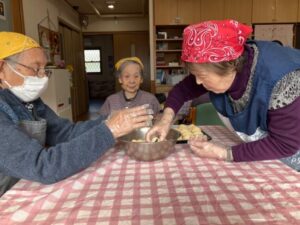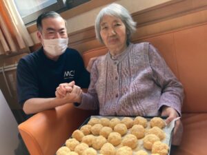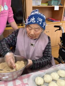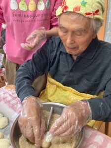 「こうやって丸めるのね!」とご利用者様お手のもの👏