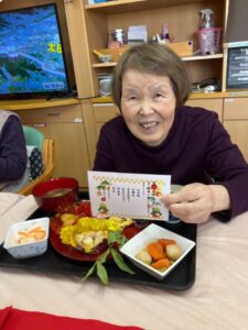 黒豆🫘に栗きんとん、伊達巻など、 「これは体にいいんだよ〜」「長生きの意味があるんだよ😊」 なんてお話ししながら、楽しくいただきました🍴💬