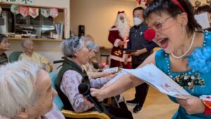 大きなクリスマスケーキの登場に大きく沸く会場。