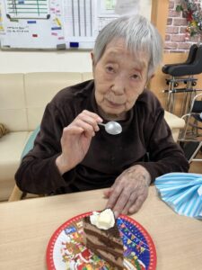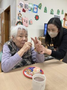 入居者様がクリスマスケーキを召し上がっている最中にかえってしまったり、