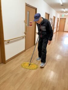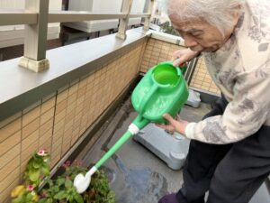 普段の生活としては、2階で花の水やりをしたり、1階で、廊下のモップかけをして下さり、疲れて寝てしまう事もあります。