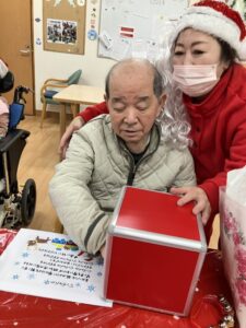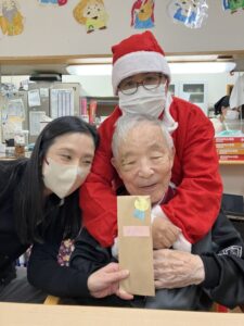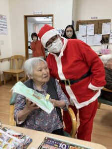 12/25の2階のクリスマス会を午前中に来たりと、まさにあわてんぼうのサンタクロースでした。(午後は、違うサンタクロースが参加し、入居者様が仮想したり、スタッフによる演奏で、盛り上がりました。