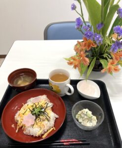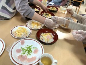 お昼ご飯にはちらし寿司と