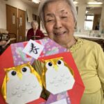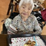 敬老会に合わせ、利用者の皆様には長寿を祝う紙細工を製作していただきました。