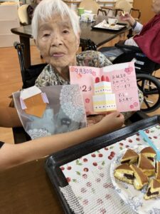 今月は誕生月を迎えられた利用者様のために「誕生会」と、今年も健康に過ごされた