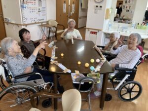 皆さん、思い思いの姿勢からボールを打ってゲームを楽しんでいらっしゃいました。
