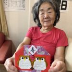 長寿・招福のシンボル、フクロウをあしらった紙細工を作ってまとめ、フロアの壁に飾らせていただきました。