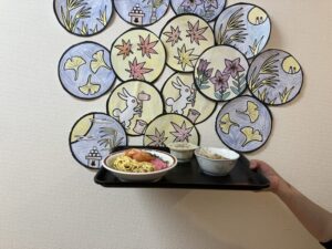 利用者の皆様とお月見にちなんだ壁飾りを製作しました。