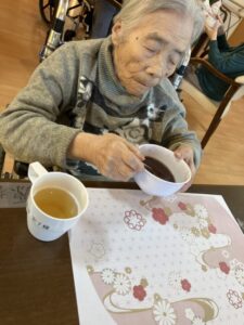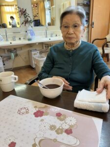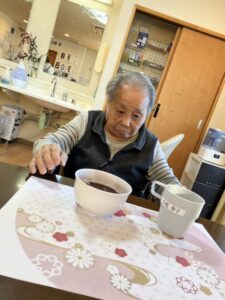 他にも、お正月にちなんでおせちのお昼、寒い季節に体が温まるお汁粉を召し上がりました。