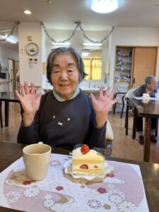今月はこちらのお二方のお誕生月でした。先ほどの工作と一緒にケーキでお祝いです。