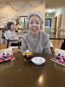 そして2階あかしあは3月のメインイベントの一つ、「ひな祭り」を祝わせていただきました。