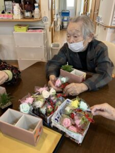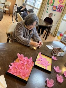 一人一人手作りで桜の花を作っていただき、ホームのフロアに飾らせていただきます。
