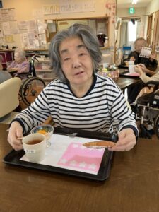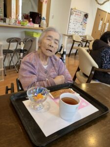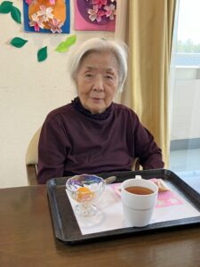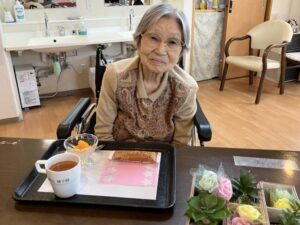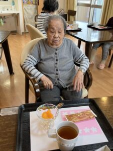 午後には職員が用意したお菓子とフルーツ、紅茶を楽しんでいただきました。
