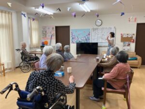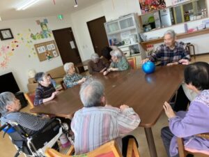 みんなで歌をうたったり、風船バレーをしたり、洗濯物をたたんだりと