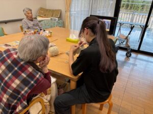 先日、グループホームでは編み物の時間を楽しみました。