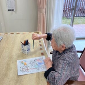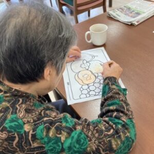 室内では、秋の風景をテーマにした 塗り絵 に取り組んでいただきました🖍️