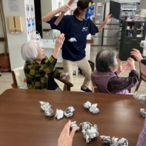 新聞紙で作った豆を一生懸命投げて、鬼退治を楽しまれていました👹✨