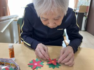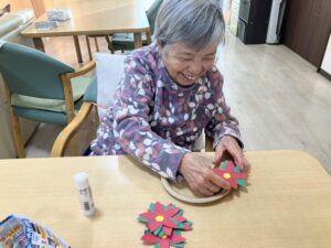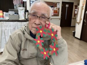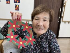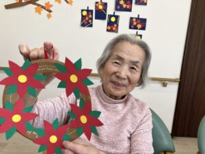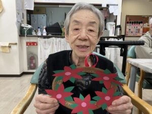12月の壁面作り、クリスマスリースを紹介させていただきます。