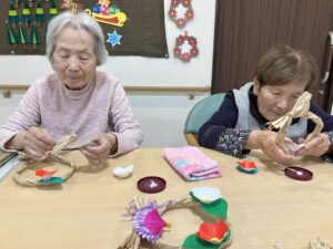 1月の装飾、しめ縄作りと吊るし飾りを