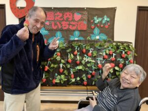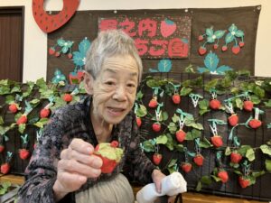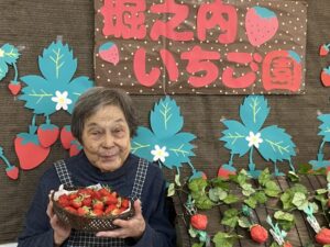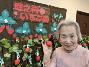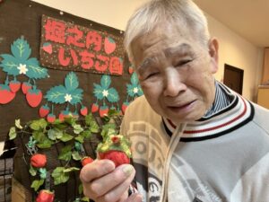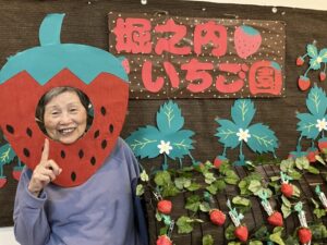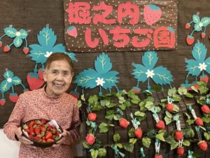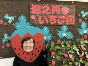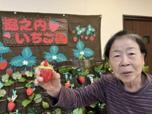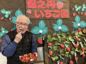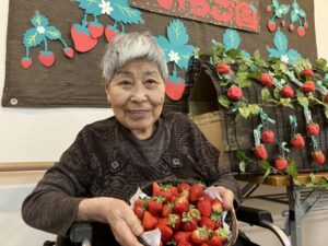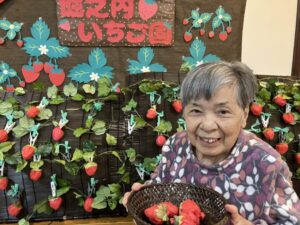 いちご狩りの場面ではご利用者様のスタッフへの気遣いから