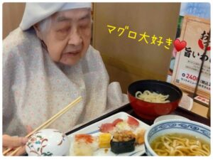 お寿司いいよね♪全部食べていいの?と遠慮気味に話されています。