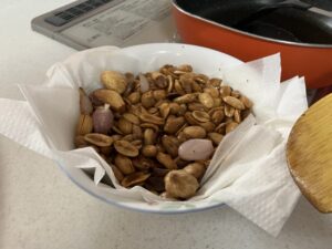 ピーナッツソースも手作りで、ピーナッツ、赤玉ねぎ、にんにく、ケミリを