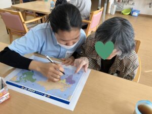 利用者様にミャンマーの場所を説明してもらいました。