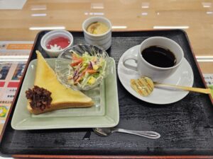 窓際の席をお願いしただけあって、モーニングをしながら桜も見れる特等席でした。