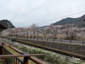 帰りに桜の前で記念撮影をしてホームへ戻りました。