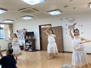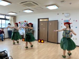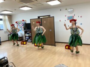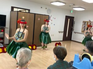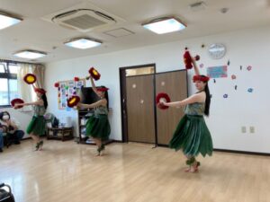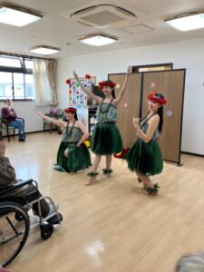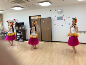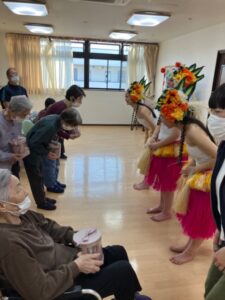 今回は当ホームのスタッフとのご縁で地元の高校からフラガールの皆さんが来てくださいました🌺