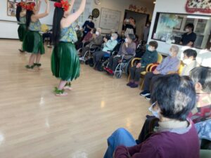 今回は当ホームのスタッフとのご縁で地元の高校からフラガールの皆さんが来てくださいました🌺