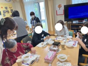 朝晩の冷え込みは日ごとに増して冬の気配を感じ始める頃となりました🍂10月の終わりにインフルエンザの予防接種も済ませて体調管理にも気を付けながら皆様お過ごしになられています。さて、11月始めにバーベキュー懇親会がありました。お部屋の飾りつけや買い物など準備もして当日はご家族様との楽しい時間を過ごされました☺