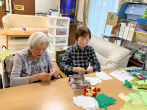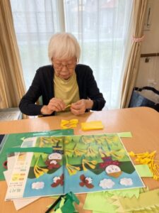 秋と言えば真っ先に食欲の秋ですが~芸術の秋🎃とゆうことで今までも季節の壁紙制作やカレンダー作りなどを行っていましたが皆様手作業が早いのですぐに終わってしまいます😅今月からは本格的にテーマを決めて作るものも少し細かく集中できて達成感も味わえるような作品を担当職員が考えて部屋も移動教室のように雰囲気を変えて始めてみました😊1・2F合同で数人ずつ和気あいあいです 皆様真剣です🤗出来上がりが楽しみです✨後日紹介します✨