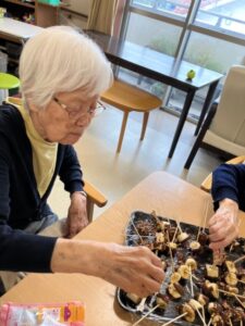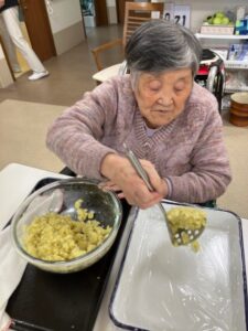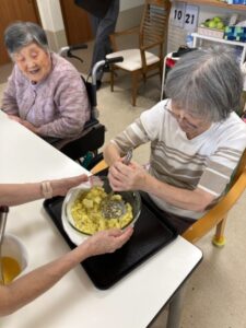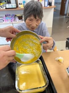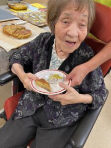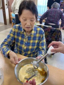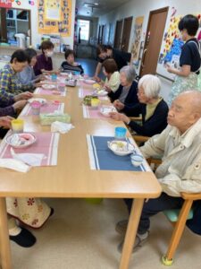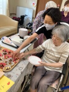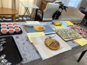 お菓子作りの得意な職員Kさんを中心に6種類のデザートをご利用者様と作っておやつの時間にカフェのようにいただきました😋😋😋 部屋いっぱいに甘くて美味しそうな香りに包まれます🍮 お皿いっぱいのデザートはしあわせな気持ちになりますね💕