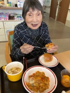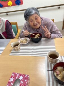 10日に行われた食レクでは1Fのご利用者様はおでん&手作りおにぎり、