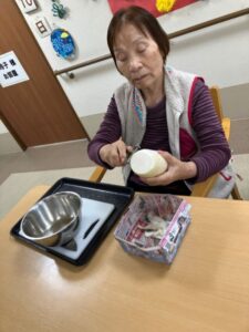 10日に行われた食レクでは1Fのご利用者様はおでん&手作りおにぎり、