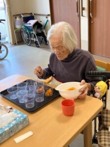 2Fのご利用者様はポテトグラタン&スープ&みかんゼリーを作りました。