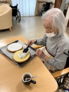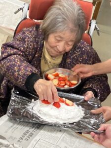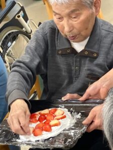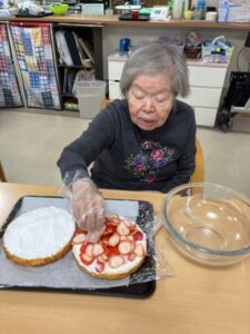 クリームを塗ったりいちごトッピングもご利用者様がやってくださいます。