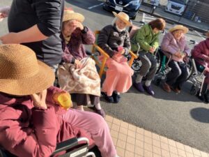 筋力を落とさない為にも家族レターにも記載している機能訓練は外気浴の際、欠かさずに行うようにしています