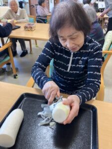 「逃げられちゃってつぶれないよ」「手が痛いね」などと言いながらも一生懸命作って頂きました